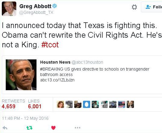 Meanwhile, the Washington Post reports on Texas’ response to Obama’s Kingly decree: