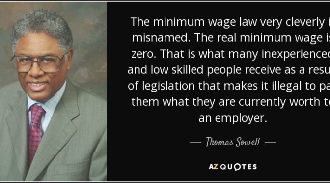 It sounds like such a good idea to give poor people a raise, but you have to ask about how this policy affects the job creator who PAYS the wages. Minimum wage laws produce bad results. We as a nation have to decide whether we are going to vote based on feelings and peer approval, or vote based on achieving good results.
