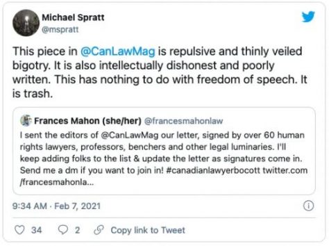 So, the article they didn’t like wasn’t criticized LEGALLY. It was just declared hateful, mean, bigoted, and offensive. It wasn’t worth an intellectual response. It was worth a totalitarian fascist response.