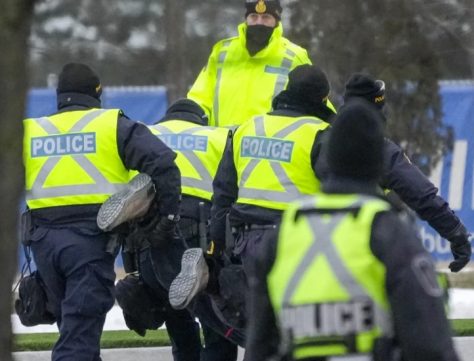Trudeau announced Monday that he would be using dictatorial power to suppress peaceful protests by force. The Emergency Act, (formerly known as the War Powers Act), was previously used during wars and violent terrorist attacks, e.g. – kidnapping of a diplomat. In the photos, you can see heavily armed militarized police using force to arrest the peaceful protestors.