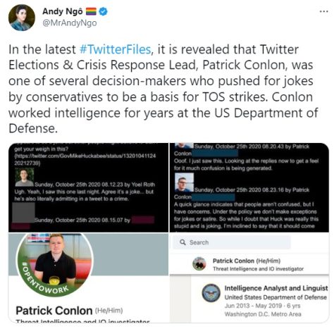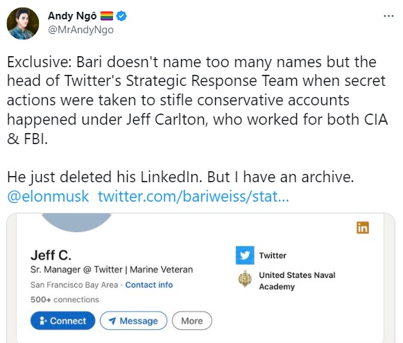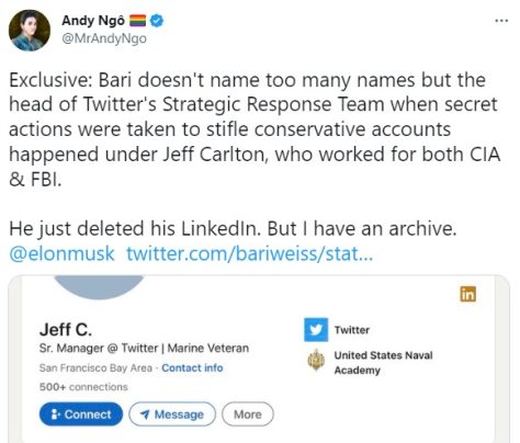 The article notes that the previous data dump was actually being “vetted” by “former Twitter Deputy General Counsel Jim Baker — the same Jim Baker at the center of Trump-era drama at the FBI”. I say former, because Musk fired him.