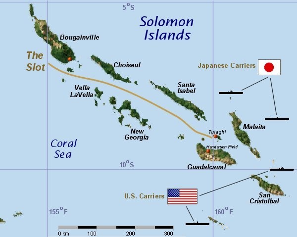 The operation starts in August 1942, two months after the Americans scored a shocking victory against a superior Japanese force at the Battle of Midway, sinking 4 Japanese carriers in exchange for the loss of one, the USS Yorktown.