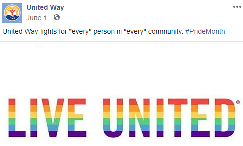 I wonder what United Way thinks about attacks on Bible-believing Christians by LGBT activists? I posted what they shared on Facebook at the top of this post, and this is what I found on their Twitter: