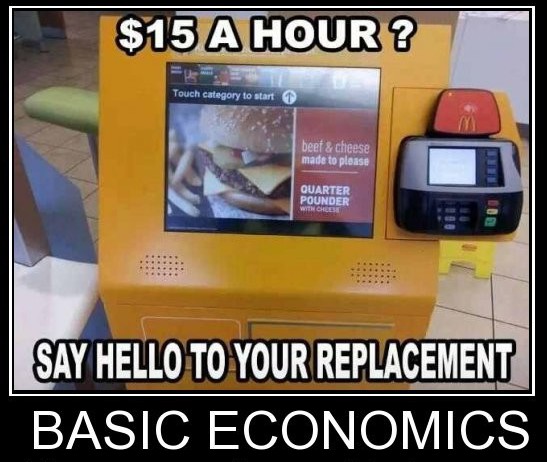The [restaurant / fast food] industry could be ready for another jolt as a ballot initiative to raise the minimum wage to $15 an hour nears in the District and as other campaigns to boost wages gain traction around the country. About 30 percent of the restaurant industry’s costs come from salaries, so burger-flipping robots — or at least super-fast ovens that expedite the process — become that much more cost-competitive if the current federal minimum wage of $7.25 an hour is doubled.