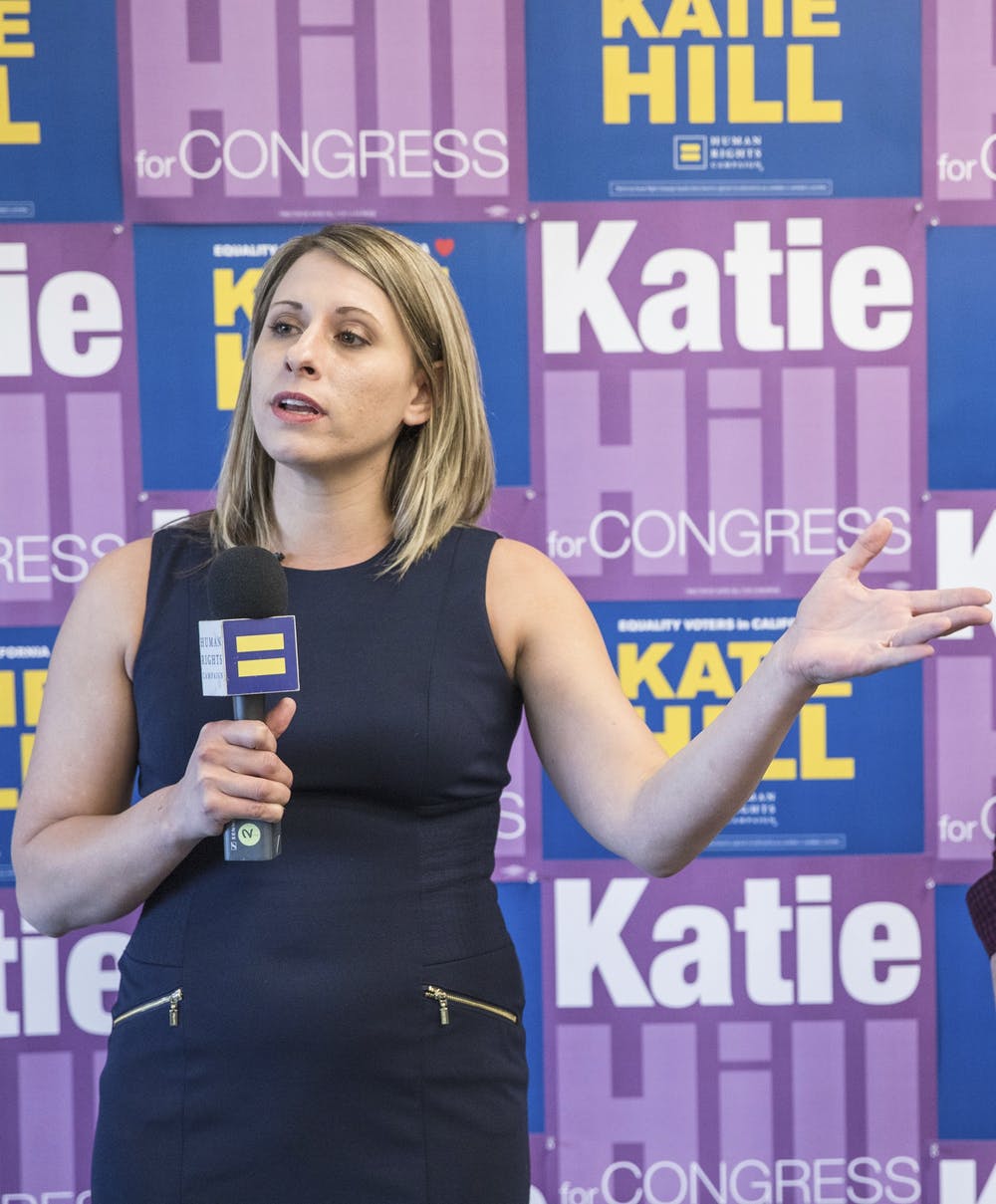 Katie Hill speaking for the Human Rights Campaign, a major gay rights group