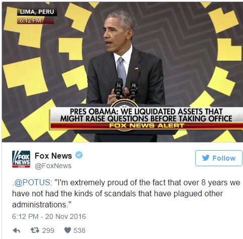 When Barack Obama was running for office, he promised to deliver a high degree of integrity and transparency. His teleprompter told him that he was going to be free of corruption and lawlessness, and he dutifully read those words out to his adoring fans. But after 8 years of Obama rule, does reality match his self-congratulating rhetoric?