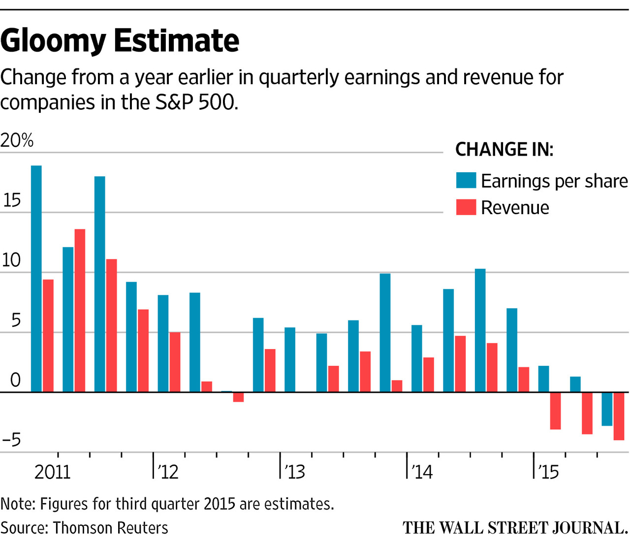 Changes in quarterly earnings and revenue for S&P 500 companies