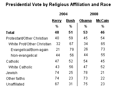 Obama did very well with Catholics in 2008 even though Obama is the most pro-abortion president in the history of the United States. Catholics tend to be more liberal on economic issues than evangelicals, which is why many of them voted for Obama. Evangelicals oppose economic liberalism, because they oppose government taking tax money from workers in order to provide services for other people aren’t trying to be self-sufficient. Evangelicals oppose increasing the dependence of individuals on a secular government. Evangelicals don’t want a secular government to take money from individuals and then use it to push secular leftist ideas like global warming, Darwinism and sex education in government run institutions, e.g. – public schools, public broadcasting, etc. Evangelicals trust individuals to care for the poor, and they don’t want to make it too easy for people to make reckless decisions and then get a check in the mail or a free abortion.