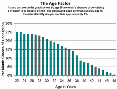 […]For a woman over 42, there’s only a 3.9 per cent chance that a live birth will result from an IVF cycle using her own, fresh eggs, according to the American Society of Reproductive Medicine (ASRM). A woman over 44 has just a 1.8 per cent chance of a live birth under the same scenario, according to the US National Center for Chronic Disease Prevention and Health Promotion. Women using fresh donor eggs have about a 56.6 per cent chance of success per round for all ages.