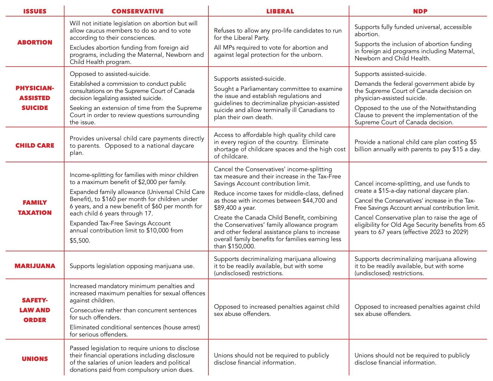 All three leaders also support late-term abortion. They show no regard for the reality that every year thousands of babies lose their lives by being aborted in the latter stages of pregnancy, after the stage when children of the same age are born, survive outside of the womb, and live productive lives as Canadian citizens.